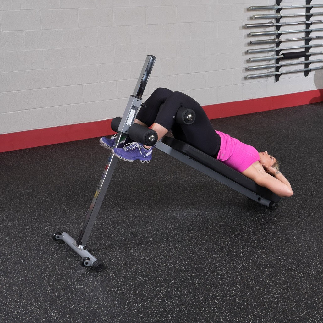 For enhanced convenience, the Body-Solid Pro-Style Ab Board includes transport wheels, allowing for easy adjustment and storage, making it an ideal addition to any home gym or commercial fitness facility.