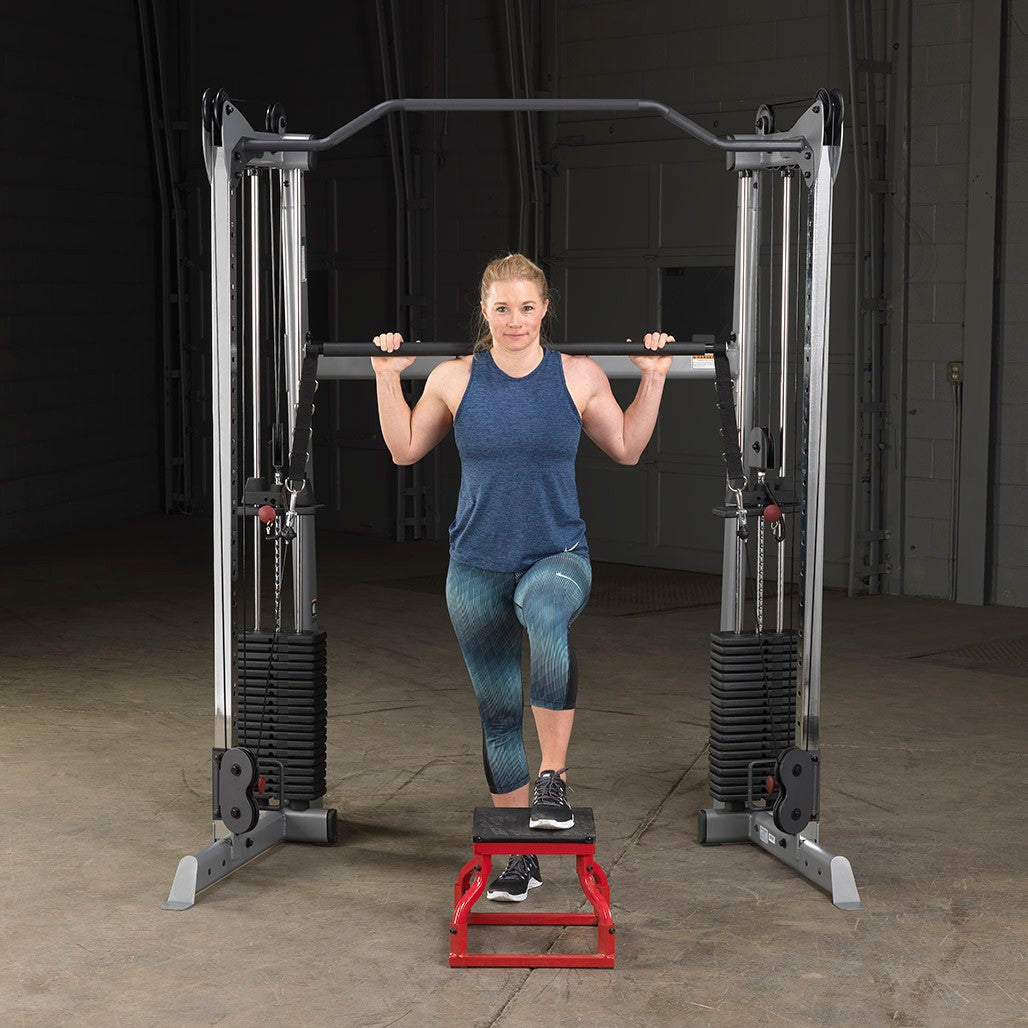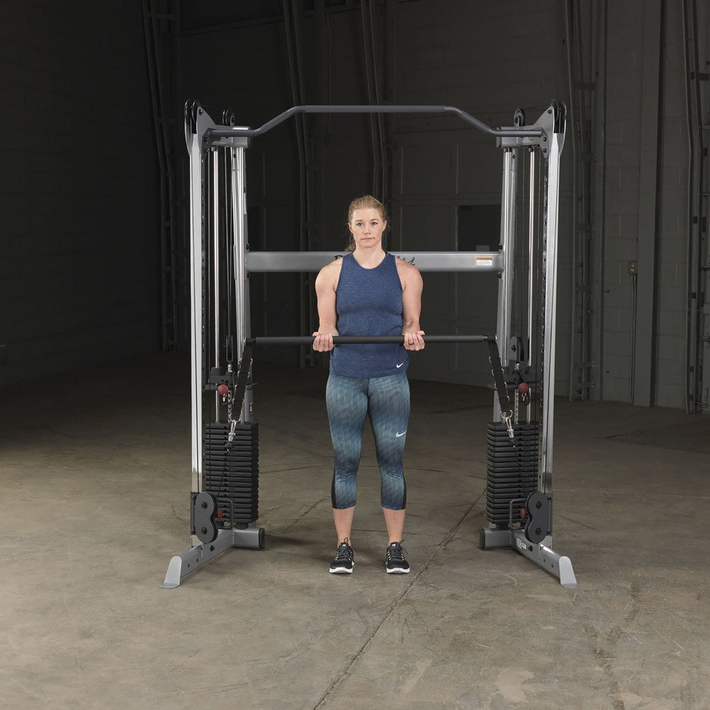 Connect the Dual Weight Stacks with the GDCC Functional Trainer press bar, designed for use with the Body-Solid functional training center's dual weight stacks. By connecting the GDCC to both racks of the Body-Solid GDCC210, you can utilize both stacks simultaneously for a seamless, unilateral movement.